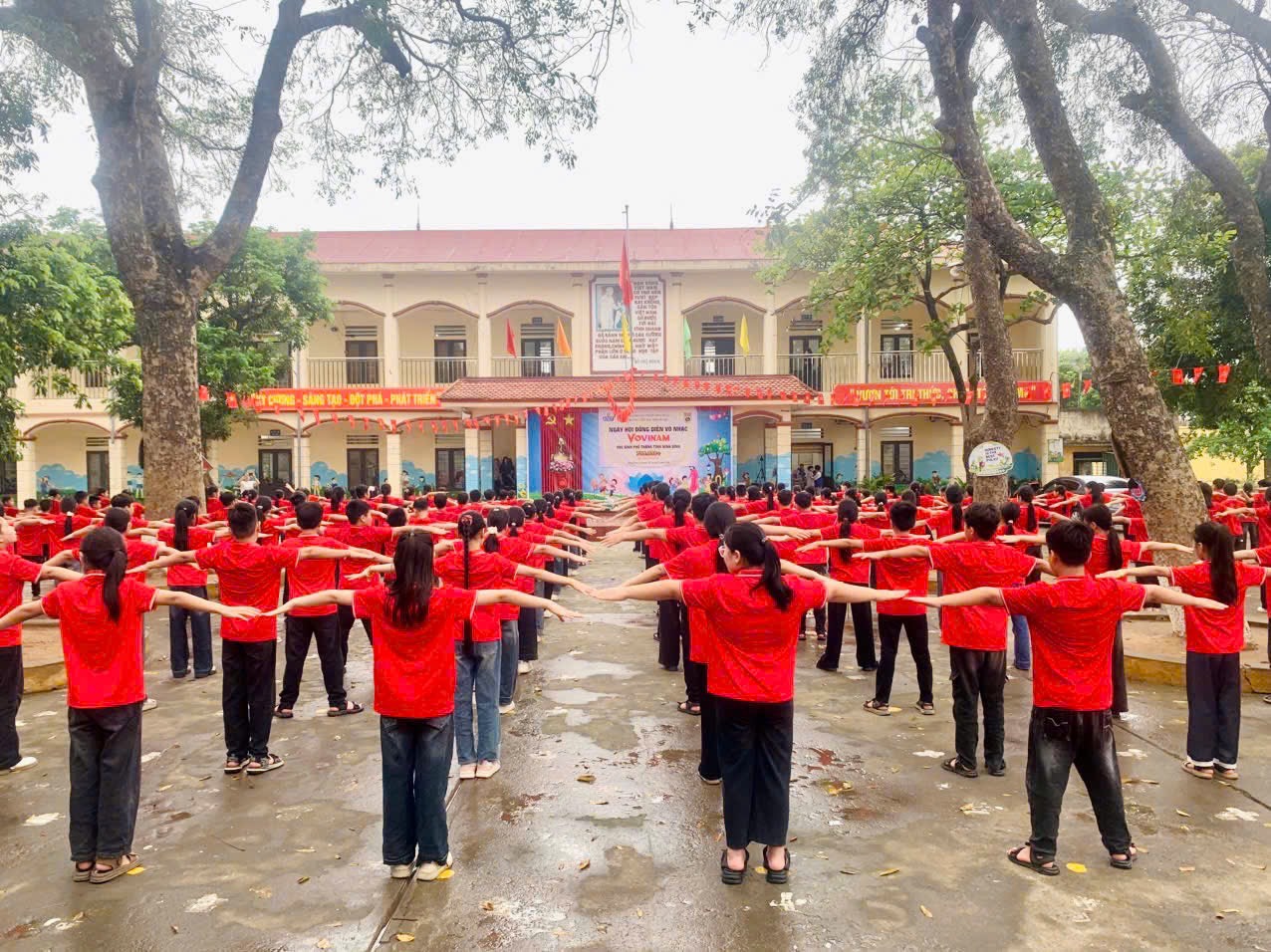 Hòa trong không khí sôi nổi, hào hứng của phong trào rèn luyện thể chất, Trường Tiểu học Khánh Phú đã tổ chức thành công chương trình đồng diễn võ nhạc Vovinam kết hợp bài thể dục giữa giờ với sự tham gia của toàn thể học sinh trong nhà trường.