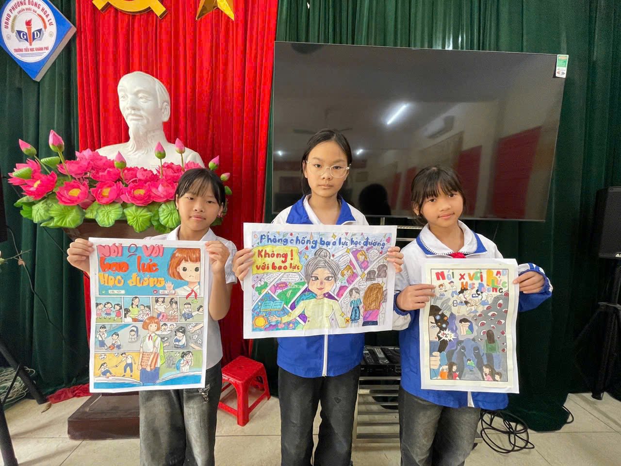 Các em học sinh Trường Tiểu học Khánh Phú đã hưởng ứng tích cực cuộc thi. Với sự hồn nhiên và sáng tạo, các em đã gửi gắm nhiều thông điệp ý nghĩa qua từng bức tranh, thể hiện hình ảnh “trường học hạnh phúc” – nơi thầy cô, bạn bè luôn yêu thương, đoàn kết, cùng học tập trong môi trường an toàn, thân thiện.