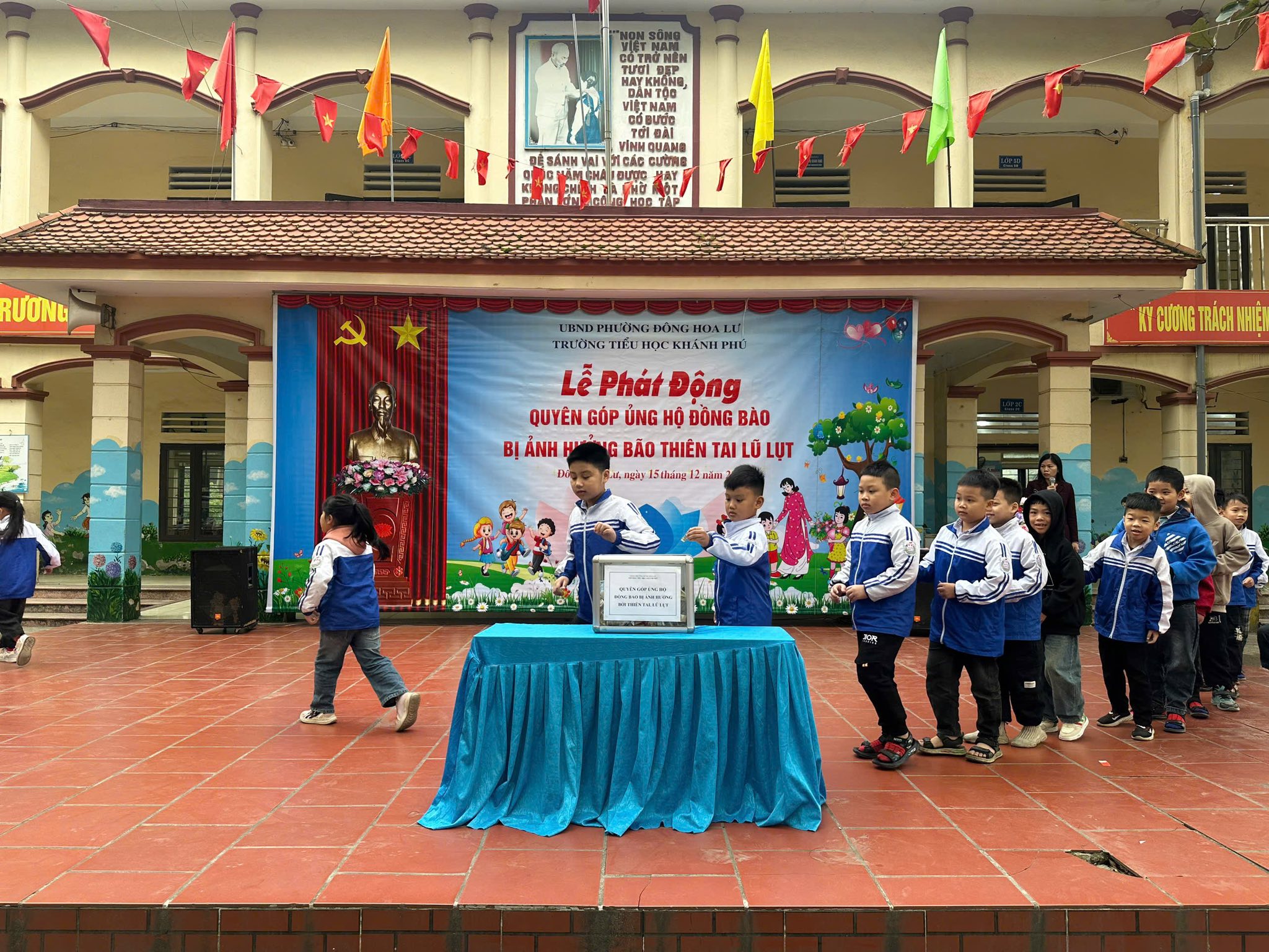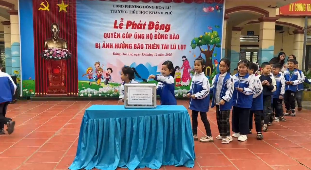 Phát huy truyền thống Đoàn kết, “Tương thân tương ái” của dân tộc Việt Nam. Thứ Hai, ngày 15/12/2025 Trường Tiểu học Khánh Phú đã tổ chức Lễ phát động quyên góp ủng hộ đồng bào bị ảnh hưởng bởi thiên tai, lũ lụt.